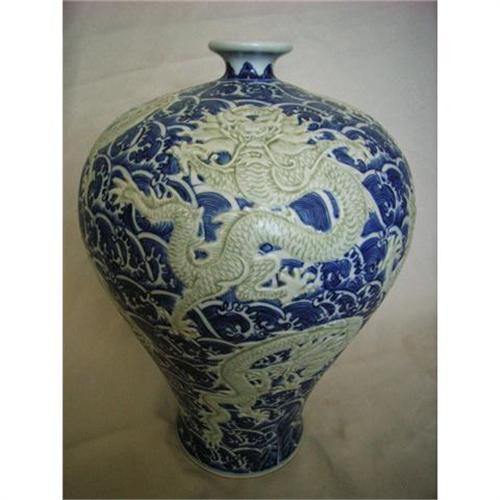 A blue and celadon carved nine dragon vaes. seal mark and period of QIANLONG.