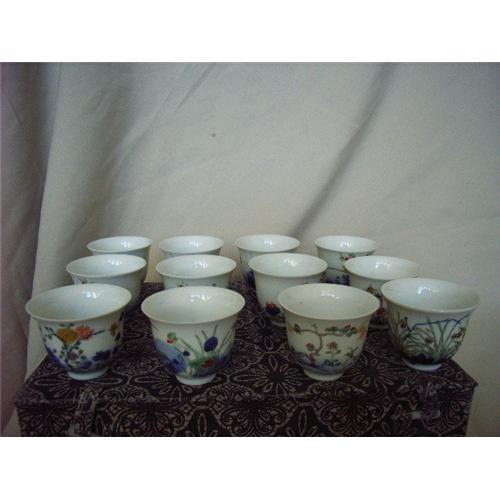 A twelve of cups with wucai floral designs.seal mark and period of KANGXI.
