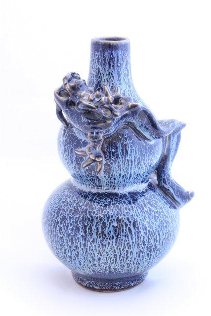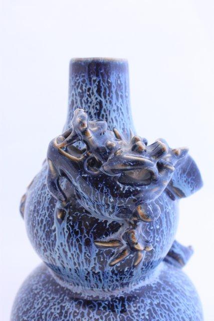 Draped with dragons, blue with gold highlights. Approx. 7.5" H. Please read our terms of sale.