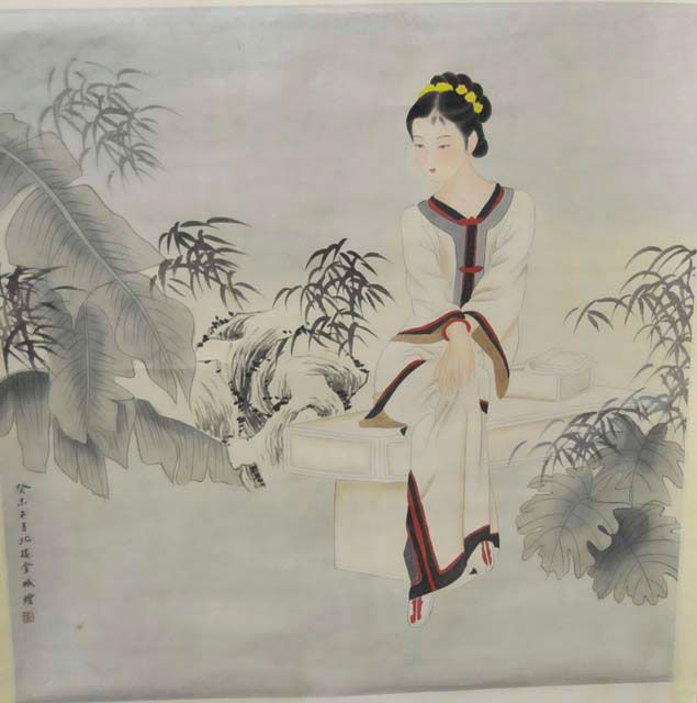 With signature Jin Cheng. Approx. 25" x 25". Artist's name not guaranteed. Please read our terms of sale.