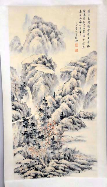 With signature Qi Gong. Approx. 19' x 38". Artist's name not guaranteed. Please read our terms of sale.