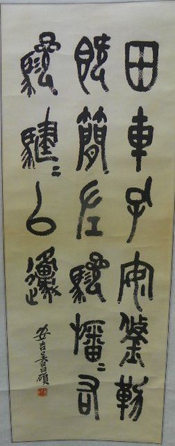 Depicting "Calligraphy", Wu Changshuo September 12, 1844 - November 29, 1927. Approx. 64" x 18". Artist's name not guaranteed. Please read our terms of sale.