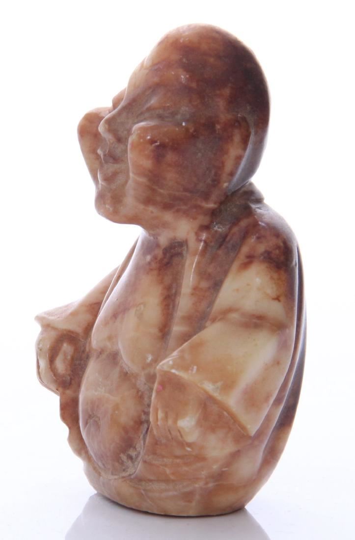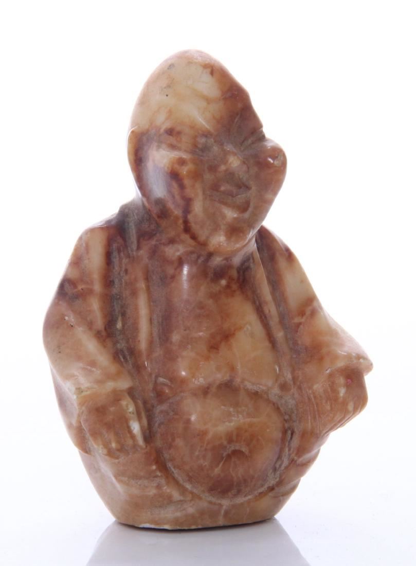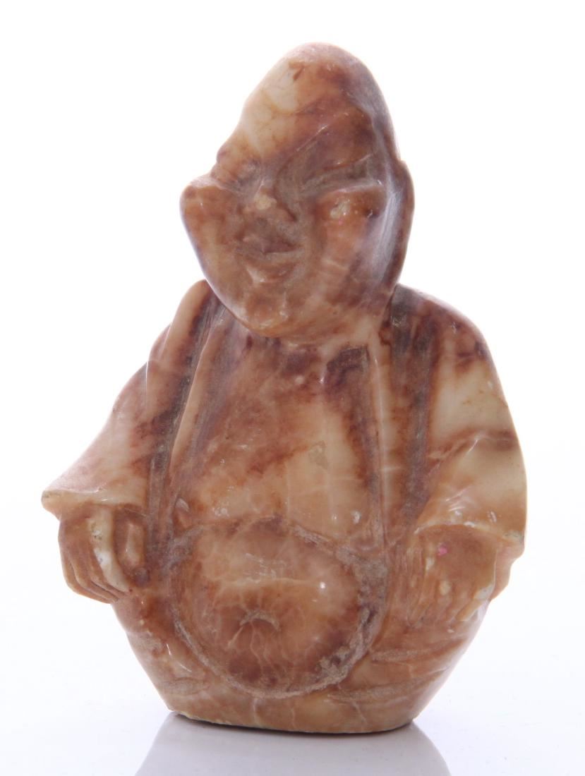 Chinese stone carving of a robed man. Estimated more than 50 yrs old. Chinese art is visual art that, whether ancient or modern. Early "stone age art" dates back to 10,000 BC, mostly consisting of simple pottery and sculptures. Chinese art has arguably the oldest continuous tradition in the world. Traditional Chinese painting involves essentially the same techniques as Chinese calligraphy and is done with a brush dipped in black or colored ink. As with calligraphy, the most popular materials on which paintings are made of paper and silk. Chinese ritual sculptures from the Shang and Western Zhou Dynasties come from a period of over a thousand years from c. 1500 and were cast with complex patterns and zoomorphic decoration, but avoid the human figure. Smaller figures in pottery or wood were placed in tombs for many centuries afterwards, reaching a peak of quality in the Tang Dynasty. Small Buddhist figures and groups were produced to a very high quality in a range of media, as was relief decoration of all sorts of objects, especially in metalwork and jade. Sculptors of all sorts were regarded as artisans and very few names are recorded. Chinese ceramic ware shows a continuous development since the pre-dynastic periods, and is one of the most significant forms of Chinese art. Most later Chinese ceramics, even of the finest quality, were made on an industrial scale, thus very few individual potters or painters are known. Many of the most renowned workshops were owned by or reserved for the Emperor, and large quantities of ceramics were exported as diplomatic gifts or for trade from an early date. (Wikipedia) Size: See Ruler Photo. (Photos Represent The Condition Of The Lot.)