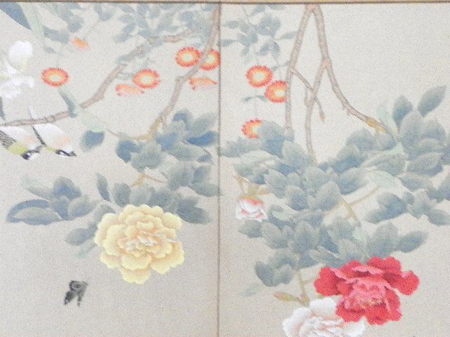 Painted with "Birds & Flowers". Approx. 35" H x 72" W. Please read our terms of sale.