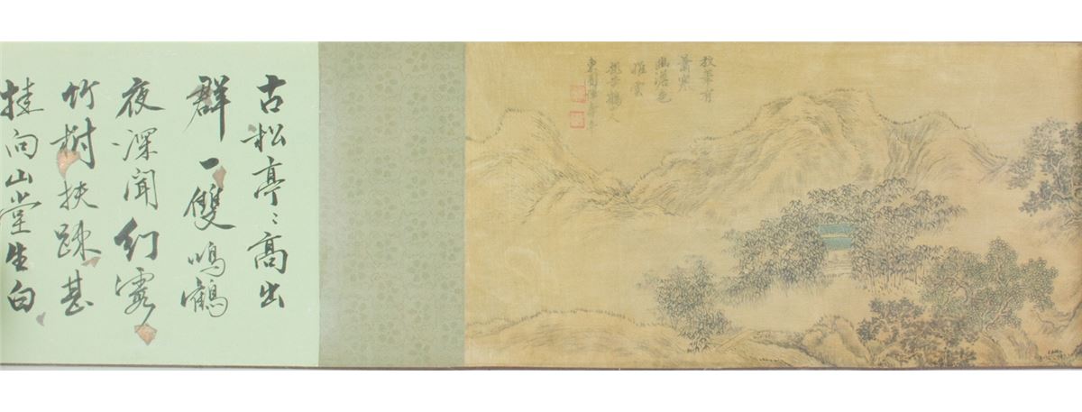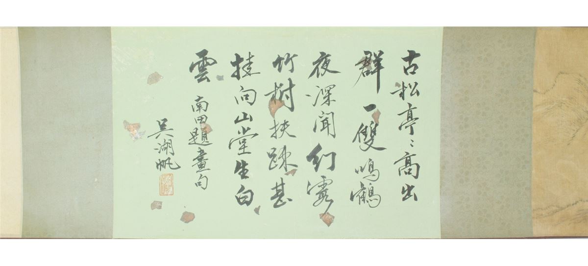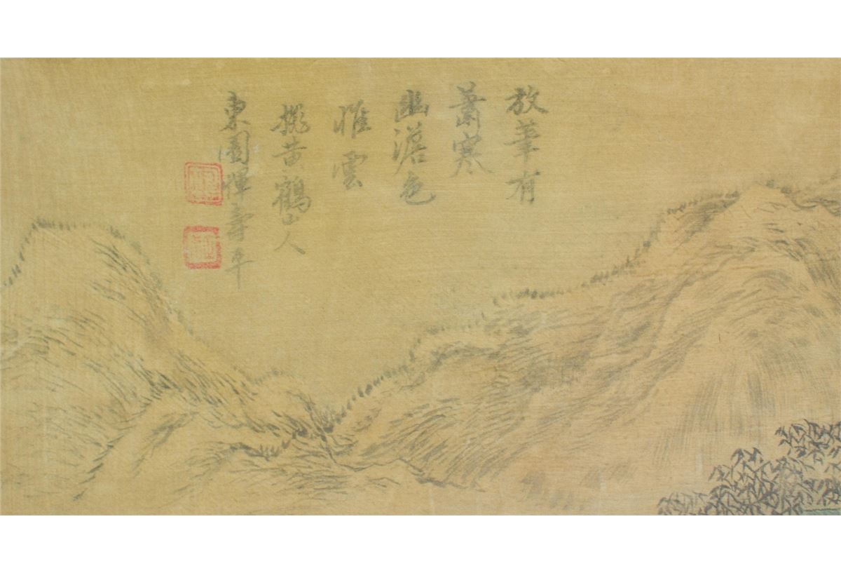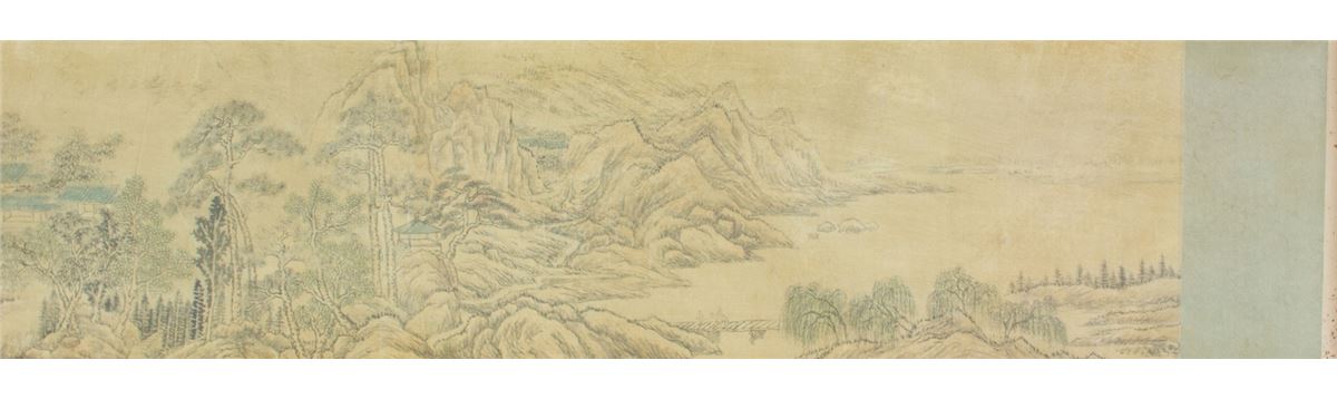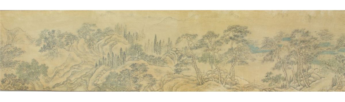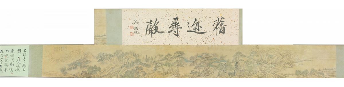 Landscape, hand scroll, Chinese ink and watercolour on silk, signed and sealed by Yun Shouping with postscript of Wu Hufan. 22 cm X 193.5 cm
