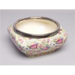 Chintz Bowl With Plated Rim Summertime by Royal Winton Grimwades. Rim needs remounting.