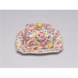 Chintz Butter Dish Royal Winton Grimwades royalty. Nob replaced - staining.