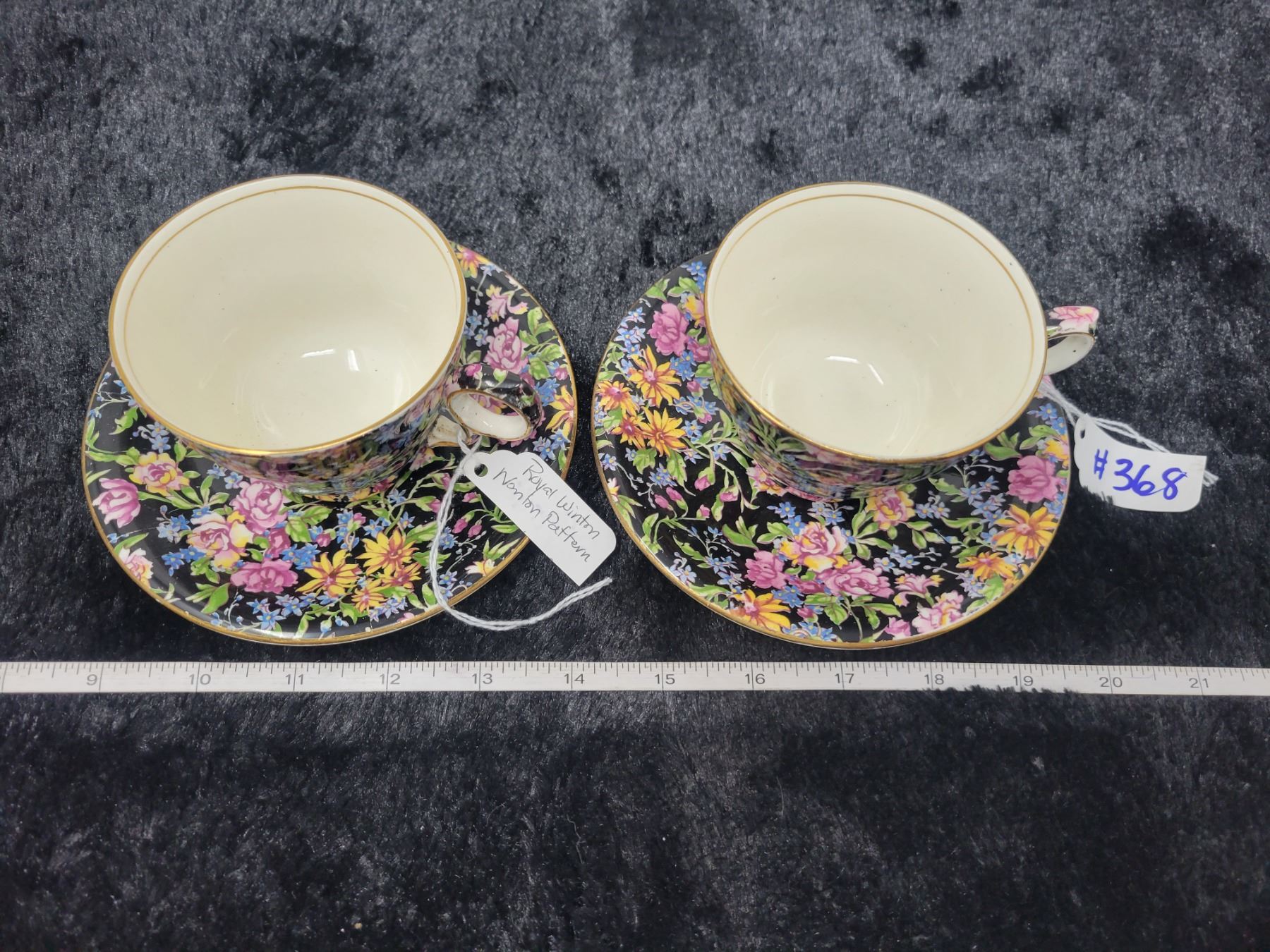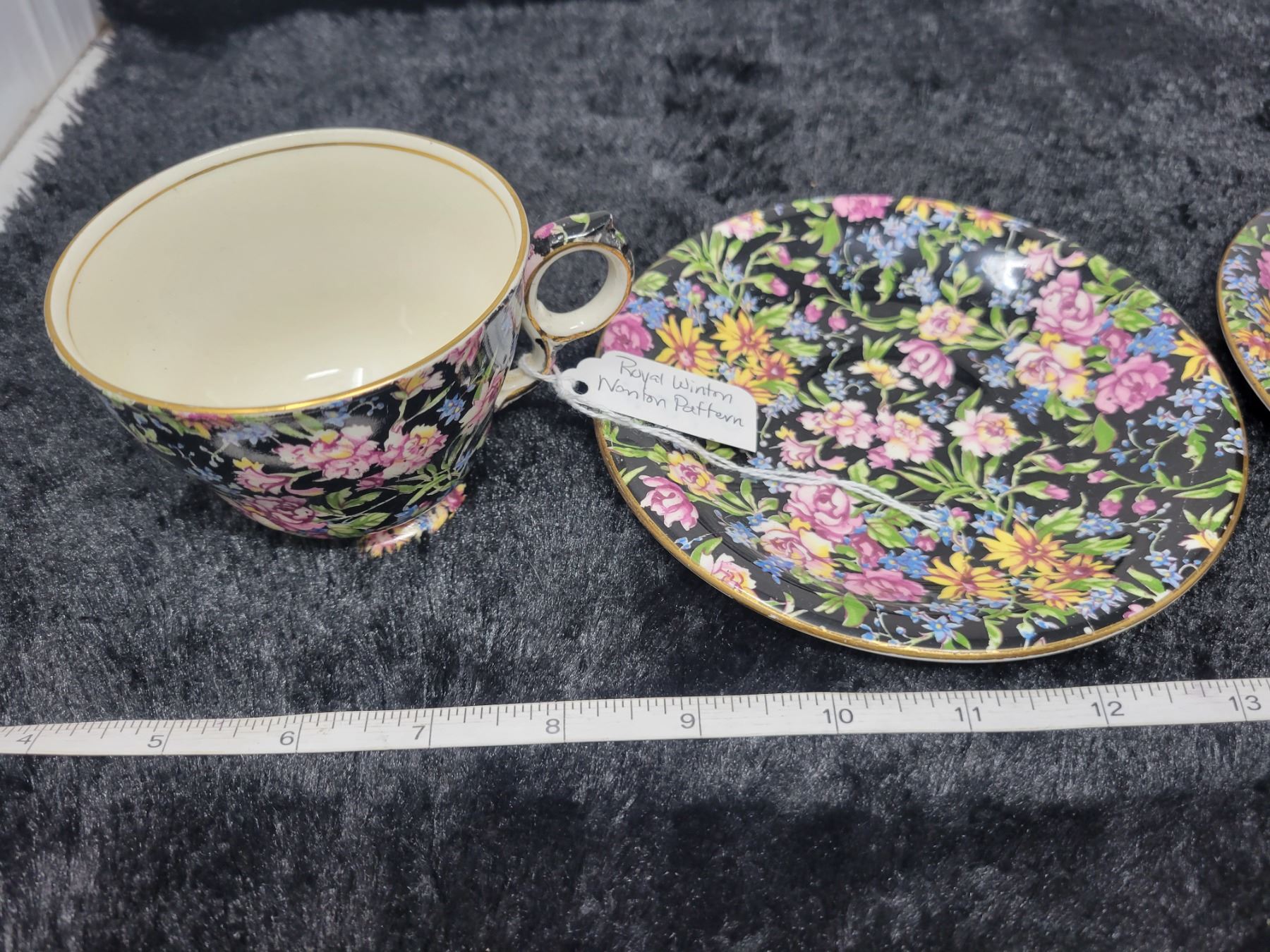 Chintz cups and saucers, Nantwich pattern, Royal Winton, England (2 cups, 2 saucers)