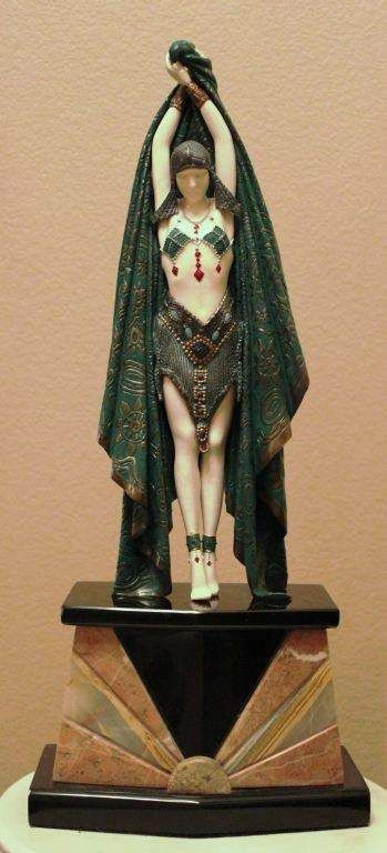 "Antinea" - Bronze And Ivory Sculpture - After Chiparus - Mutli Color Finish - Hand Carved Ivory - Mounted On Marble And Onyx Base - Approx. 26" X 11"X6" - Mint - Museum Quality