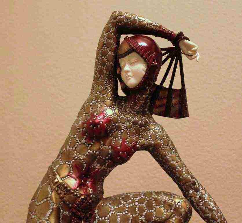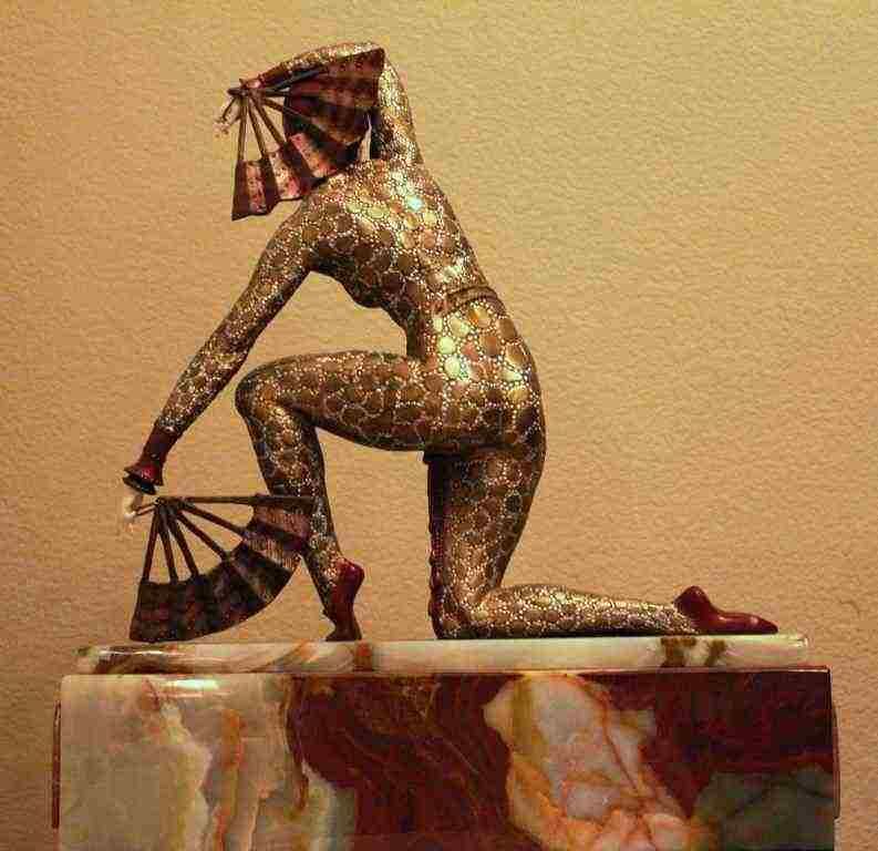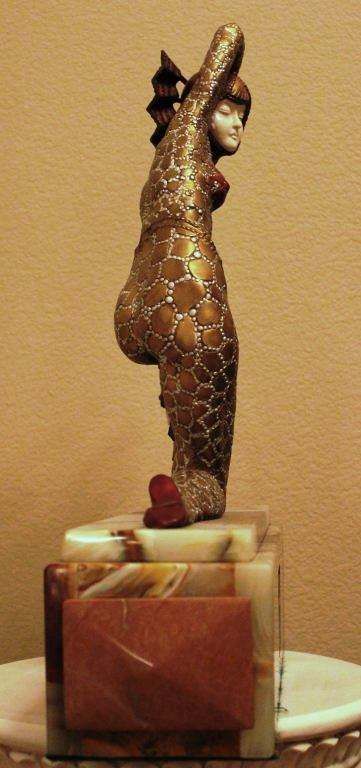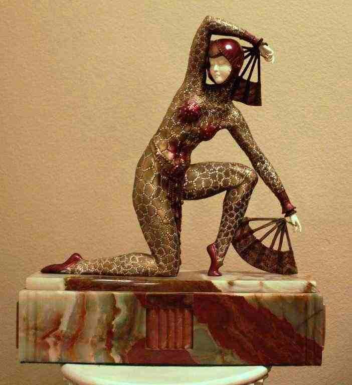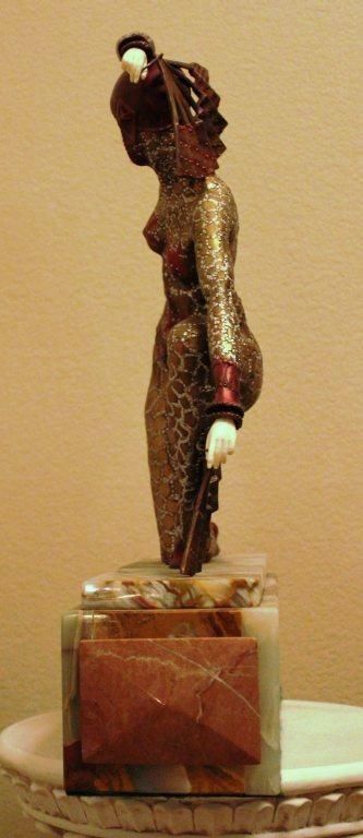 "Fan Dancer" - Bronze And Ivory Sculpture - After Chiparus - Mutli Color Finish - Hand Carved Ivory - Mounted On Marble And Onyx Base - Signed - Mint - Appx 22"X20"X5.5" - Museum Quality
