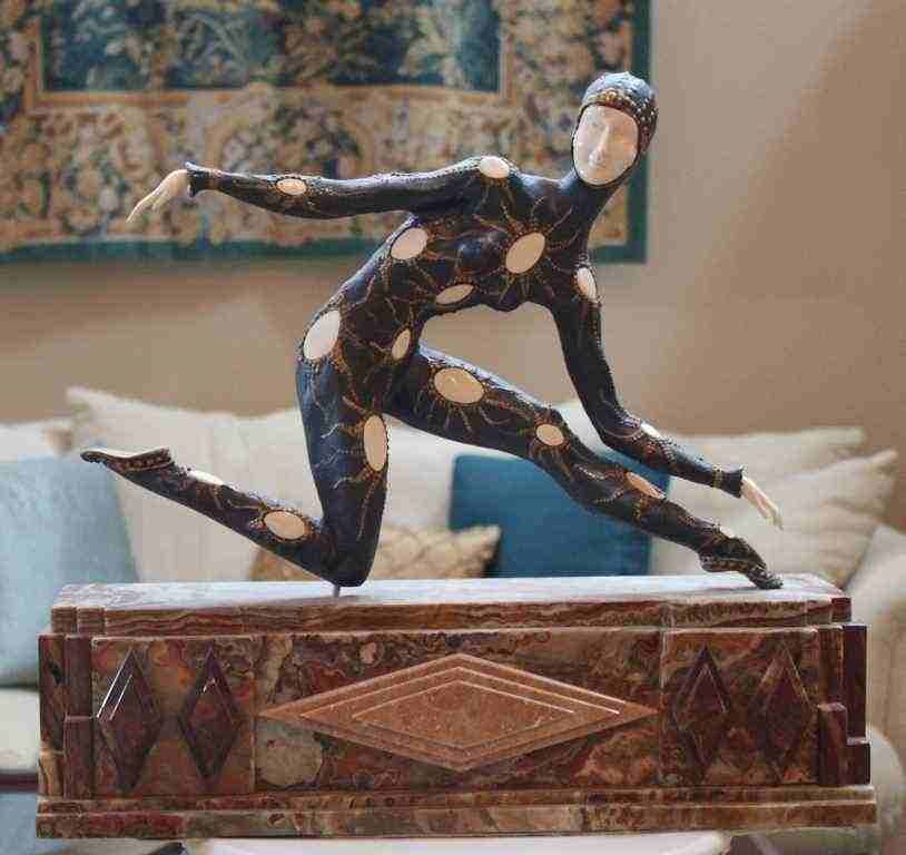 "Leotard" - Bronze And Ivory Sculpture - After Chiparus - Mutli Color Finish - Hand Carved Ivory And Bronze - Mounted On Marble And Onyx Base - Signed - Signed - 19"X21"X6" - Museum Quality