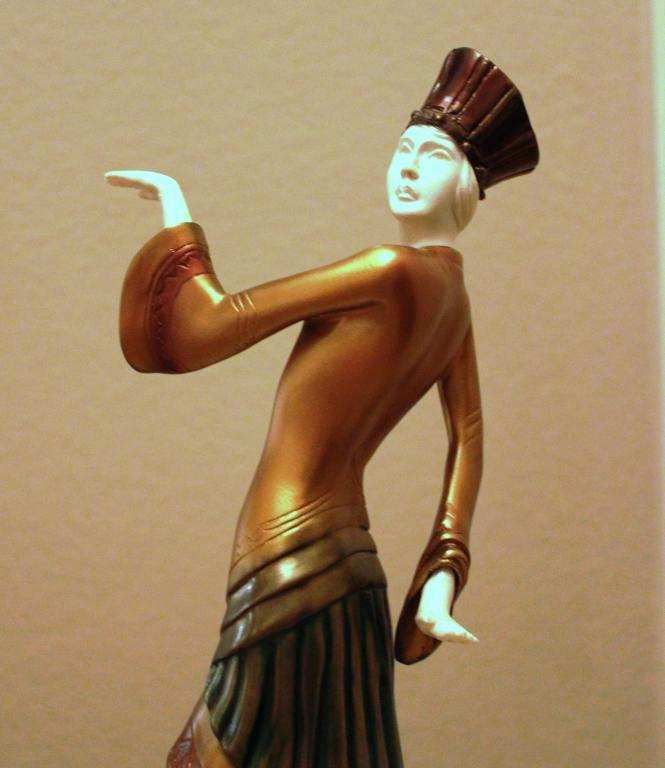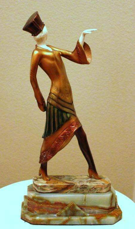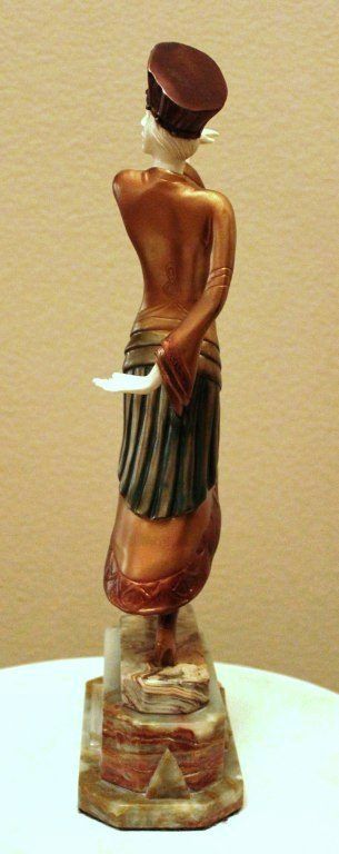"Paris" - Bronze And Ivory Sculpture - After Chiparus - Mutli Color Finish - Hand Carved Ivory And Bronze - Signed - Marble And Onyx Base - Appx 17"X9"X4" - Museum Quality