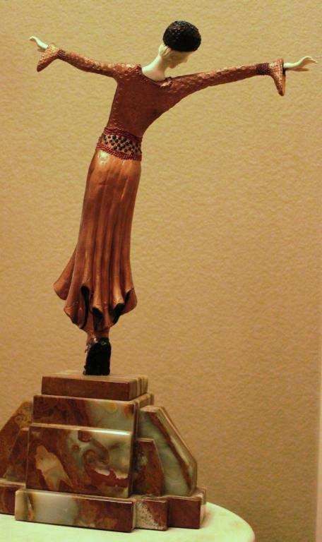 "Spanish Dancer" - Bronze And Ivory Sculpture - After Chiparus - Mutli Color Finish - Hand Carved Ivory - Mounted On Marble And Onyx Base - Signed - Mint - Apppx 22"X10"X6" - Museum Quality