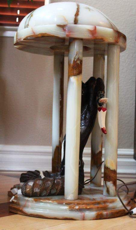 "Temple Of Goddess" - Bronze And Ivory Sculpture - After Chiparus - Mutli Color Finish - Hand Carved Ivory And Bronze - Mounted On Marble And Onyx Base - Mint - Approx 27"Hx18"Dia - Museum Quality