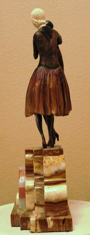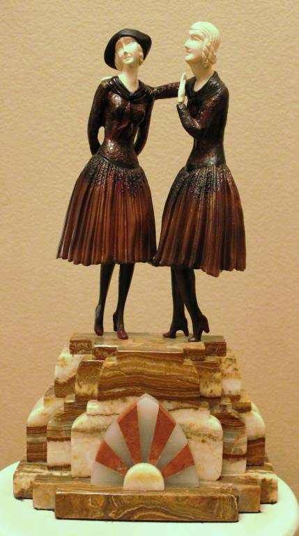 "The Secret" - Bronze And Ivory Sculpture - After Chiparus - Mutli Color Finish - Hand Carved Ivory - Mounted On Marble And Onyx Base - Signed - Mint - Approx. 21"X11.5"X5.5" - Museum Quality