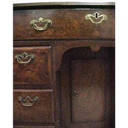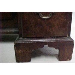 Chippendale burled walnut veneer kneehole desk, banded rectangular top with notched corners, over one long drawer, over two pedestals, each with three drawers, kneehole with interior door, dovetailed drawer construction, C.1800, 30" high x 32" across x 19" deep Estimate 1600/2500