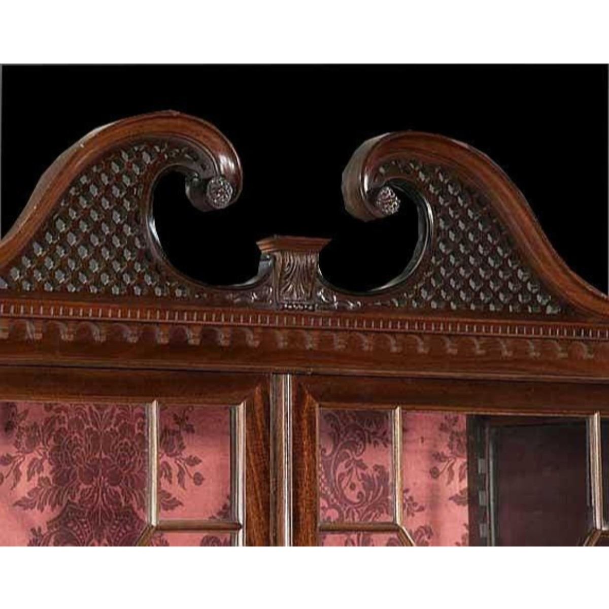 Chippendale-style mahogany bookcase cabinet. Pierced broken arch pediment, thirteen pane Mullion glass doors, carved apron & ball & slaw feet. HAS KEY for door lock! c.1890. 50"W X 17"D X 78"H.