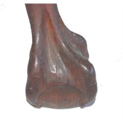 Chippendale style tea table. Measures 31" tall and 39" wide and 21" deep. Table has ball & claw feet and one false drawer.