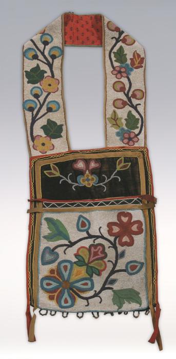 Chippewa Bandoleer Bag. 39" x 14". Beaded floral designs. Provenance: Boone Collection. Condition Report: Some minor bead loss due to use, otherwise in fine condition.