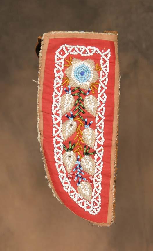 Chippewa Beaded Knife Sheath. 12 ½" x 5" . Circa 1900. (est $700-900). For condition reports please visit: www.auctioninsantafe.com/cr2011.pdf