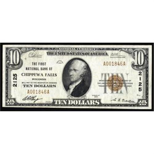 Chippewa Falls, WI $10 1929 Ty 1 The FNB Ch #2125