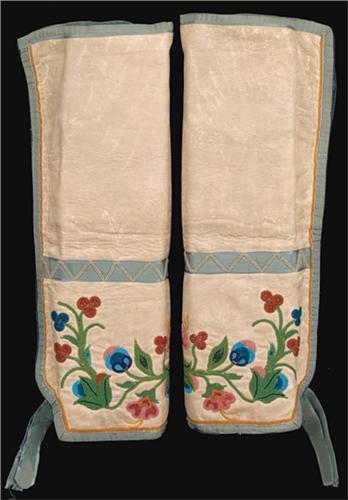 Chippewa Woman's Leggings. 18" x 6 1/2". Floral beaded designs on Indian tanned hide. Fine condition. (est $2,000-3,000)