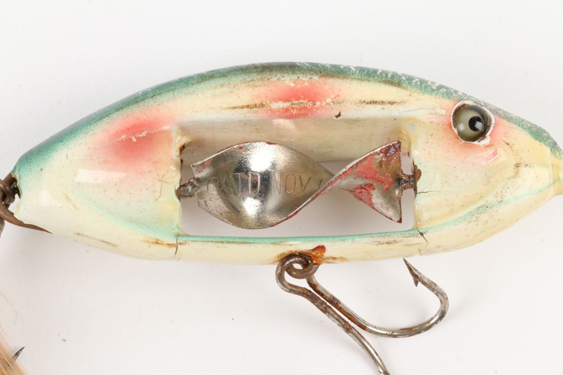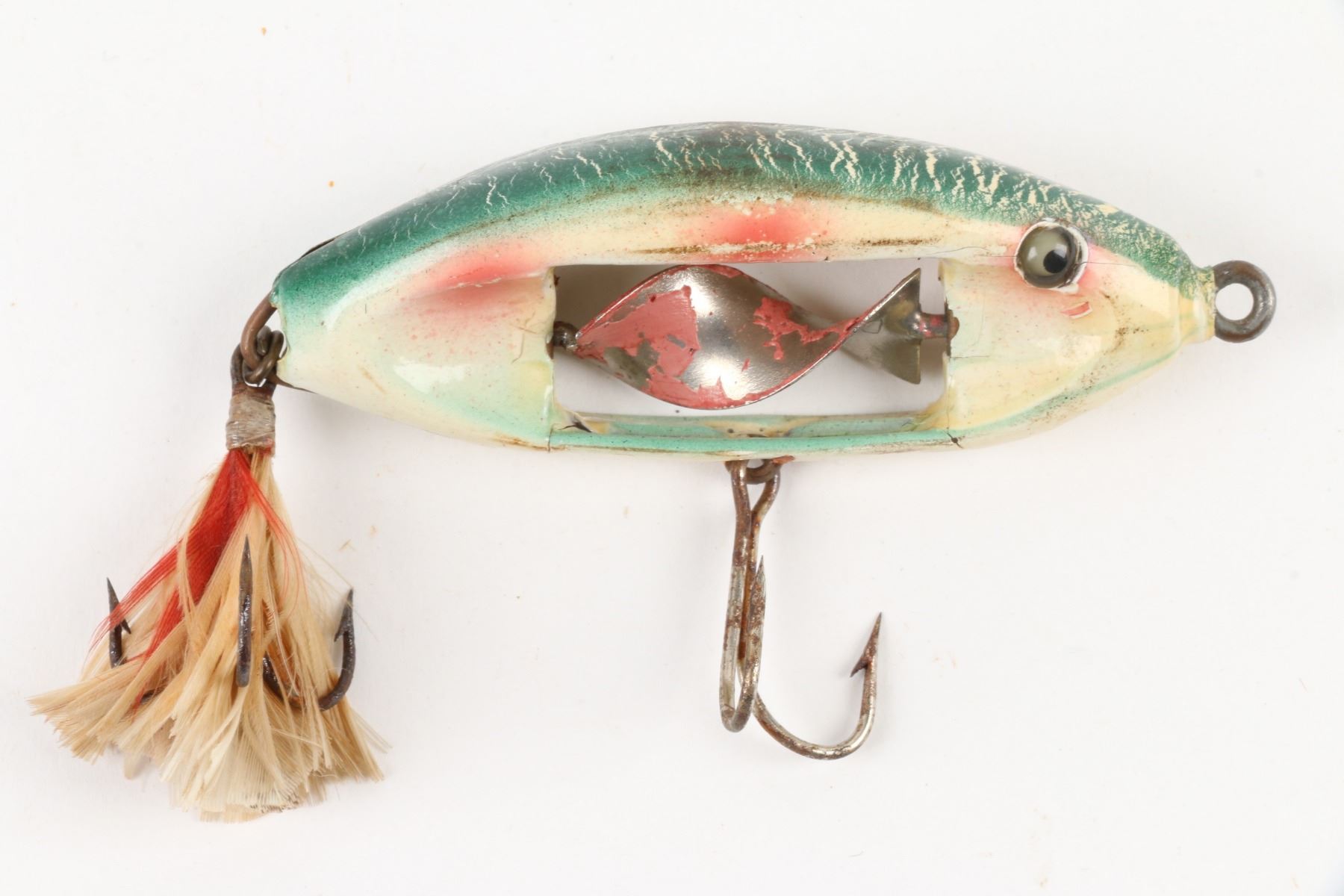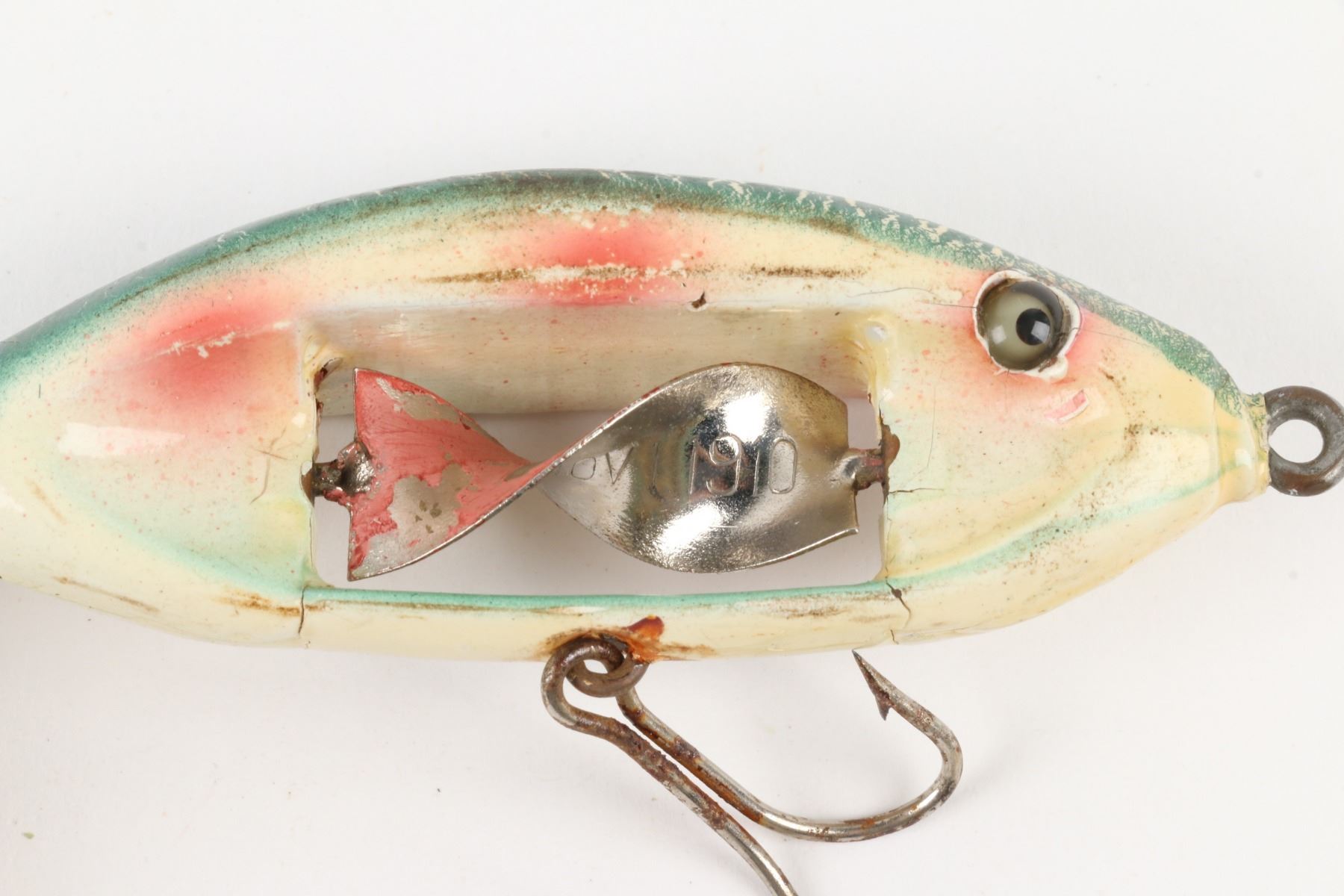 Immell Bait and Tackle Company, United States. 1910s. Boxed. Material: Wood. Quantity: 1. Grade: VG-. 4.25" box. Est. $2000-3000.