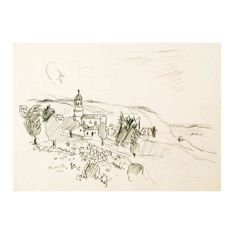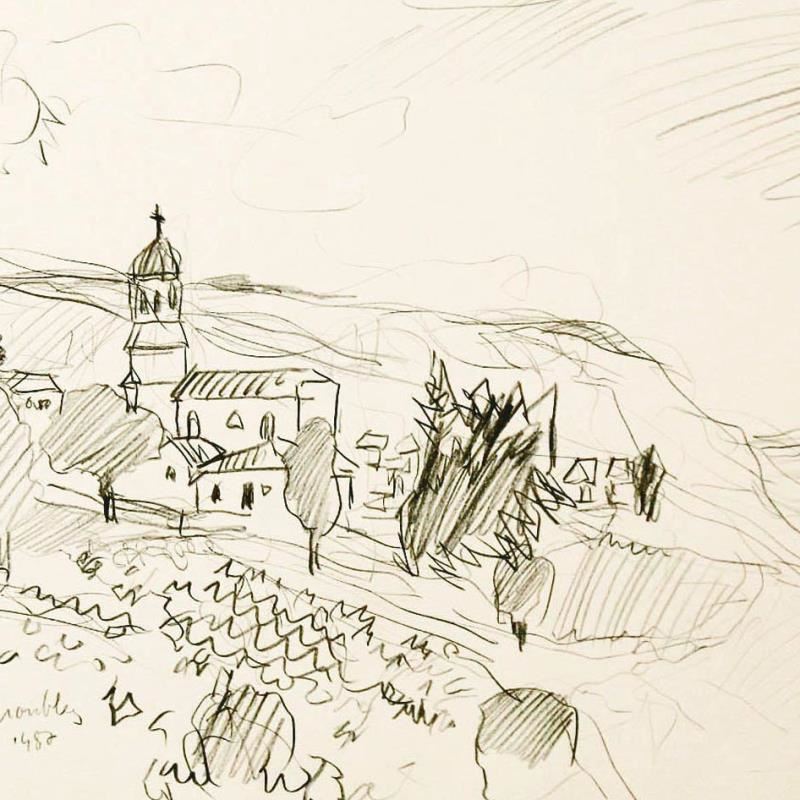 "Chiroubles in Beajuolais, France" is an original Pencil on Paper by Wayne Ensrud. The piece is hand signed by the artist and comes with a Certificate of Authenticity. Measures approximately 15" x 18".