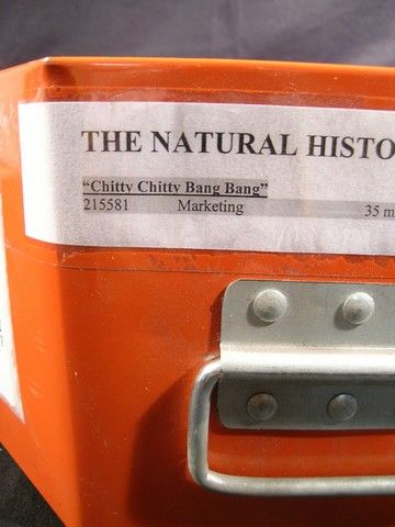 From one of the most beloved family films of all time, this is an original 35mm trailer, and a complete 16mm print of the 1968 classic musical 'Chitty Chitty Bang Bang.' The story of a hapless inventor (Dick Van Dyke) who creates a flying car, only to have a dictator from a foreign government attempt to take it for himself. This collection includes a 35mm theatrical trailer for the film, and a complete, 16mm four-reel print of the film. The films have no vinegar smell and appear to be in excellent condition. Both prints come in an orange metal carrying case with label that reads 'The Natural History Museum.' Oversized item. Additional Postage Required.