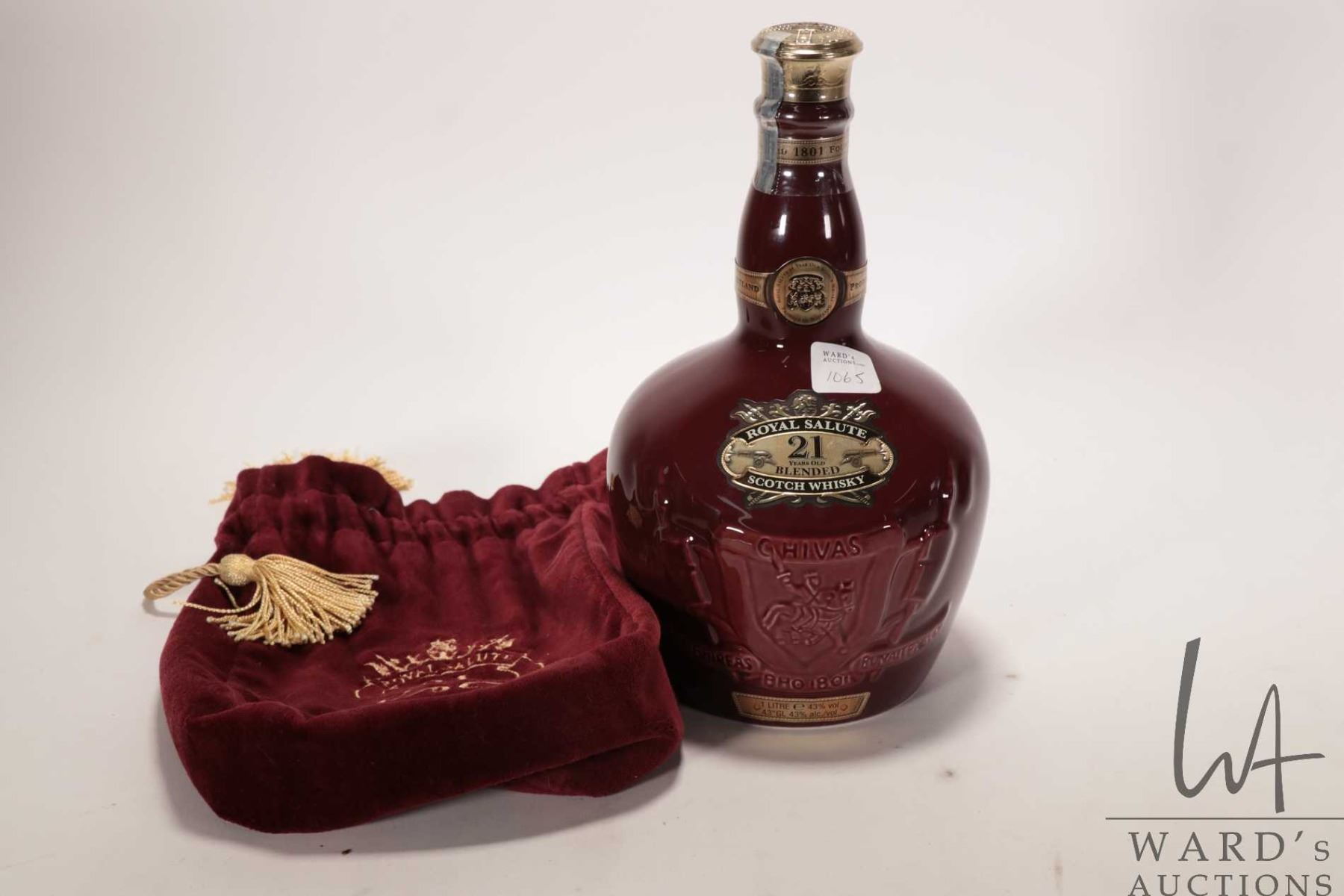 Chivas/ Royal Salute/21 Year Old/ Blended Scotch Whisky/ 1 Ltr. 43% ABV Note: Alcohol cannot be insured by any courier in Canada. Local pick up is recommended. Canadian bidders only.