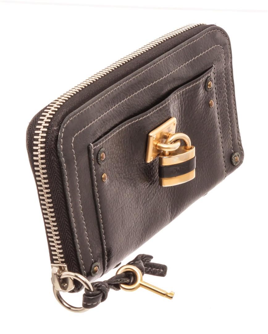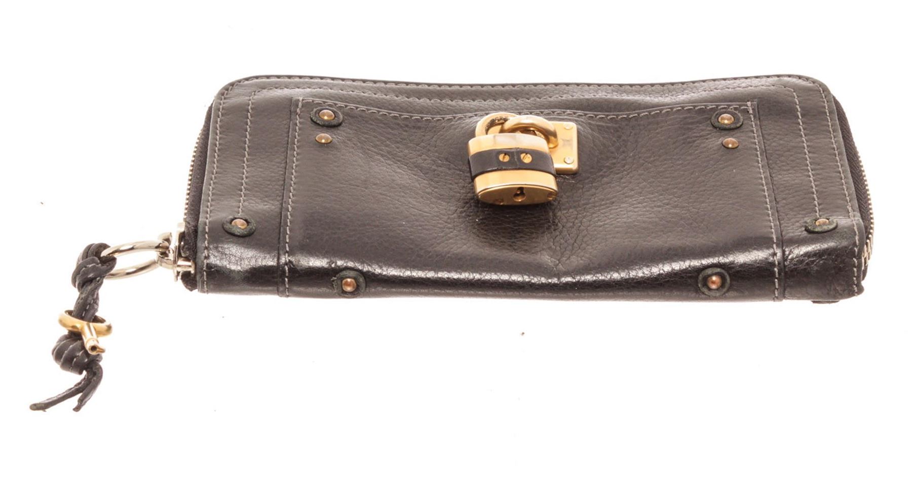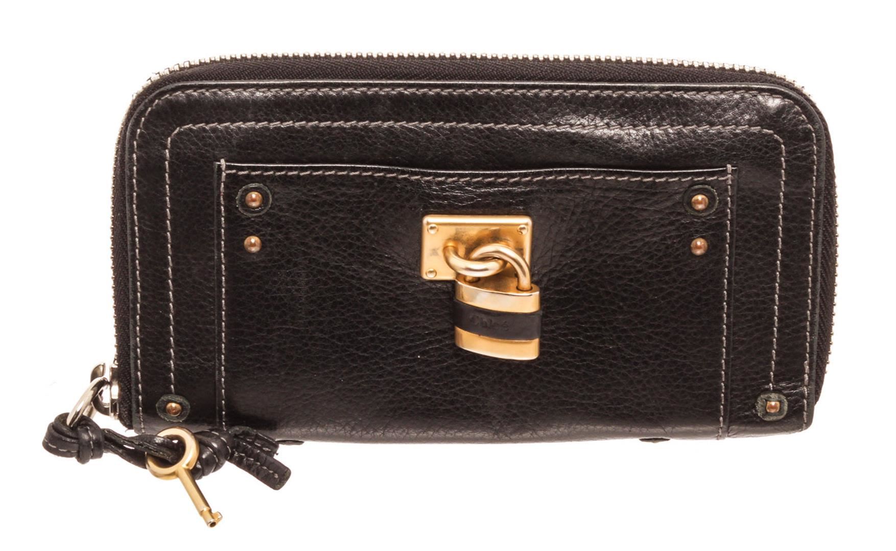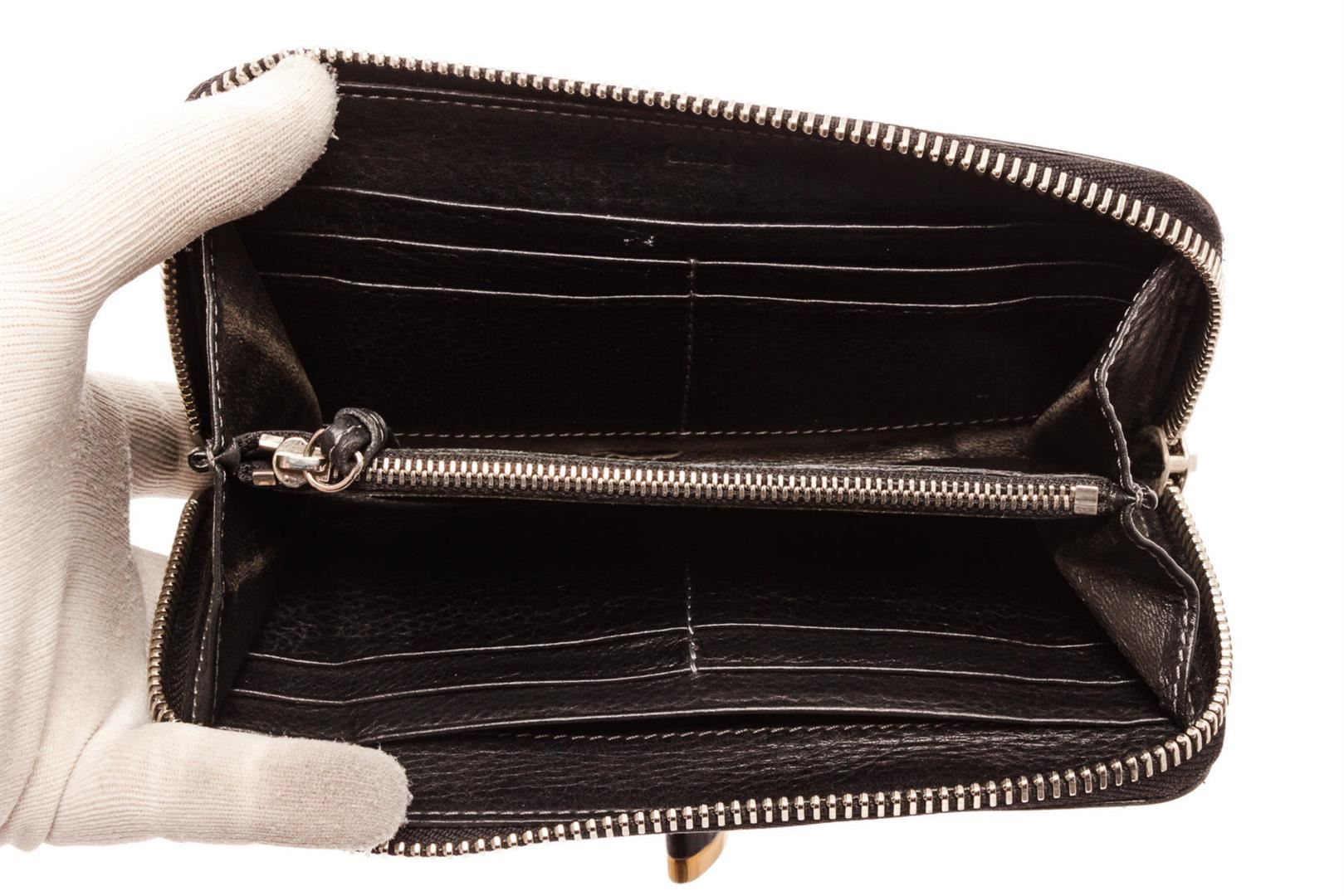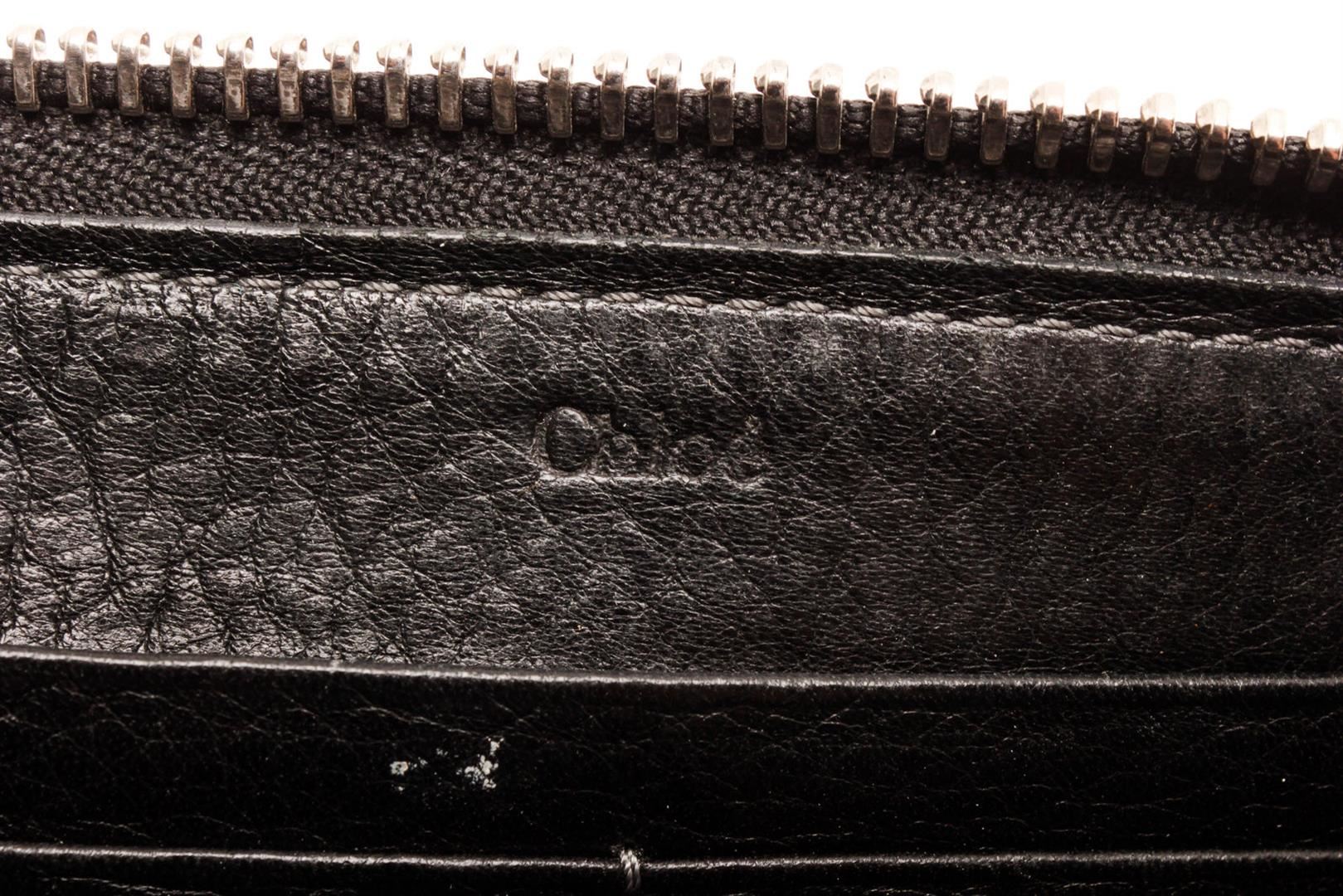 Chloe Black Leather Zip Wellet with gold-tone hardware, leather trim, interior compartments pocket and zip closures.
