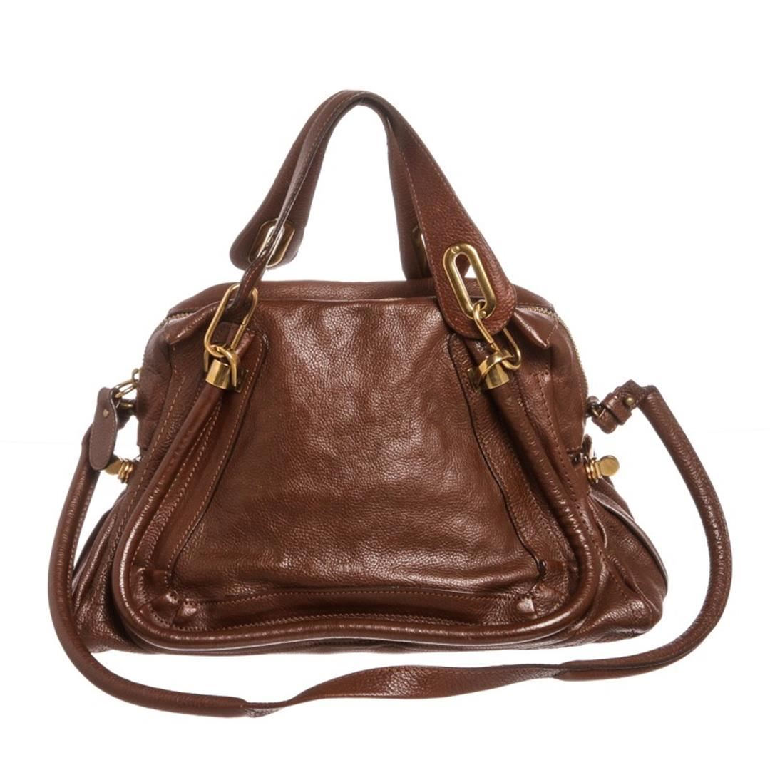 Crafted out of brown leather, dual flat handles, gold tone hardware, and zip top closure. Inner is brown fabric lined with one side zip pocket. Item is pre-owned.