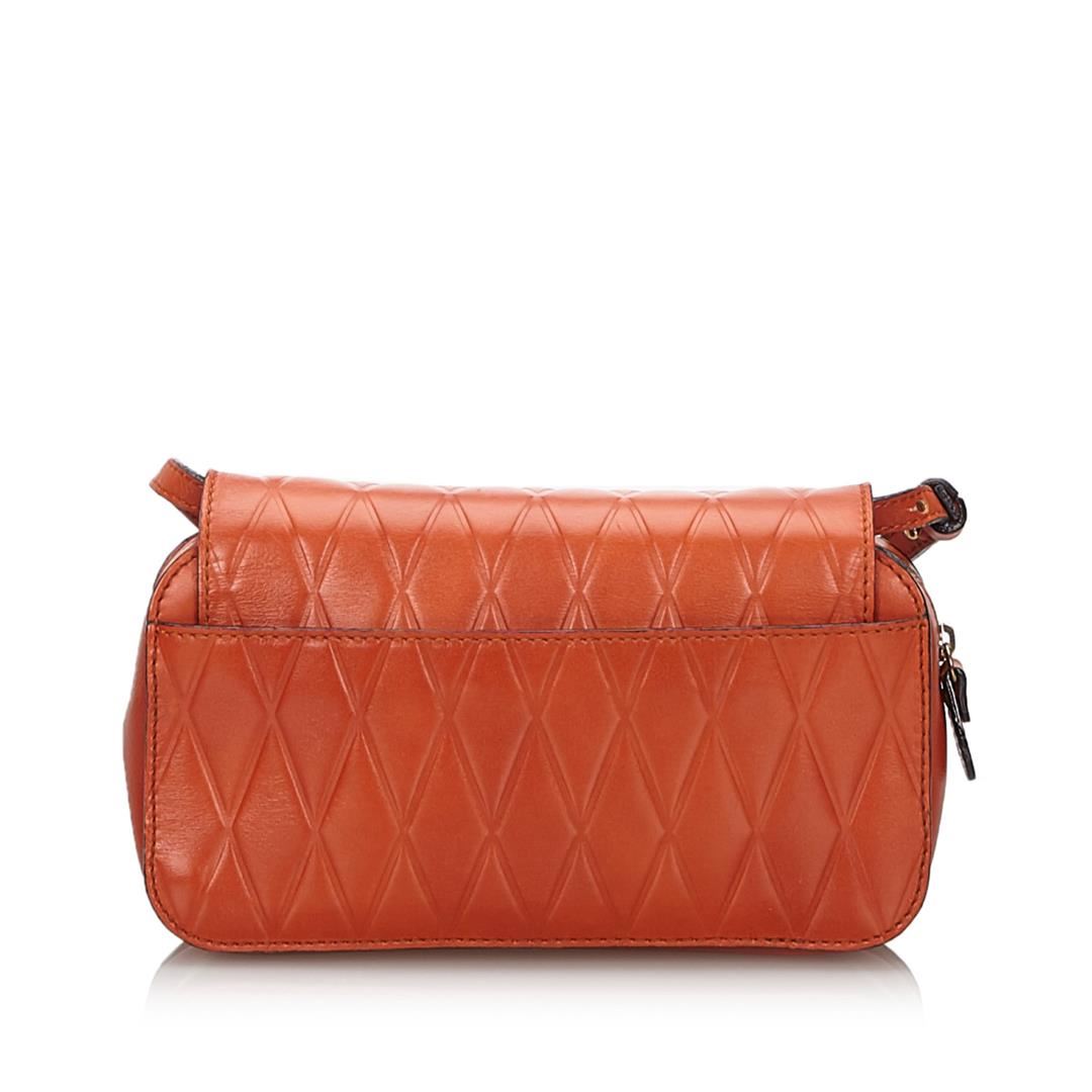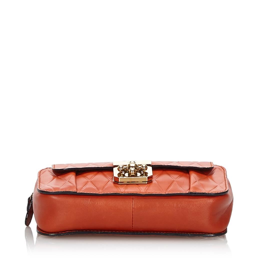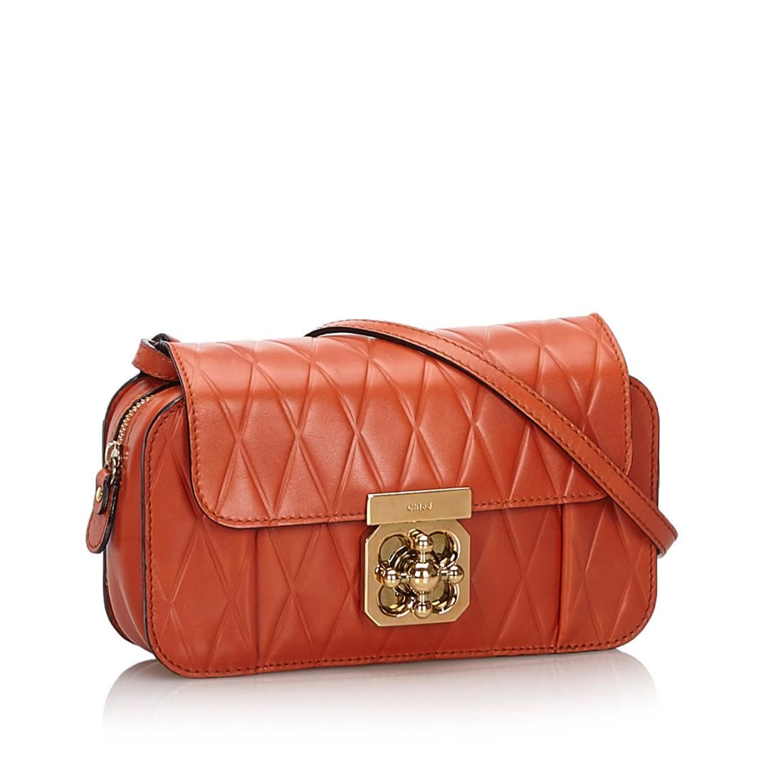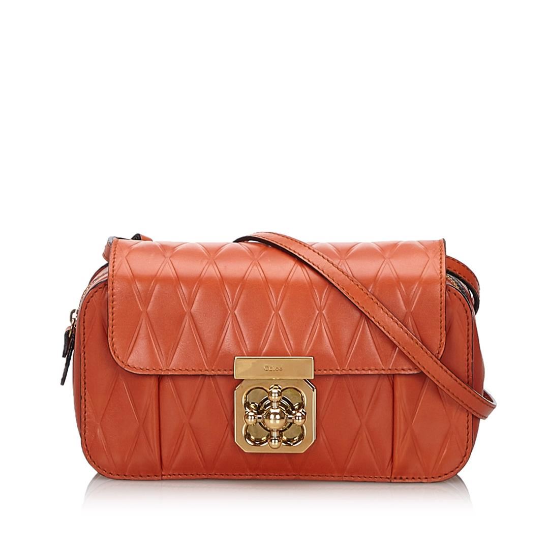 One Chloe Leather Elsie Crossbody Bag. The Elsie crossbody bag features a leather body, a flat leather strap, a front flap with a lock closure, and interior slip pockets.