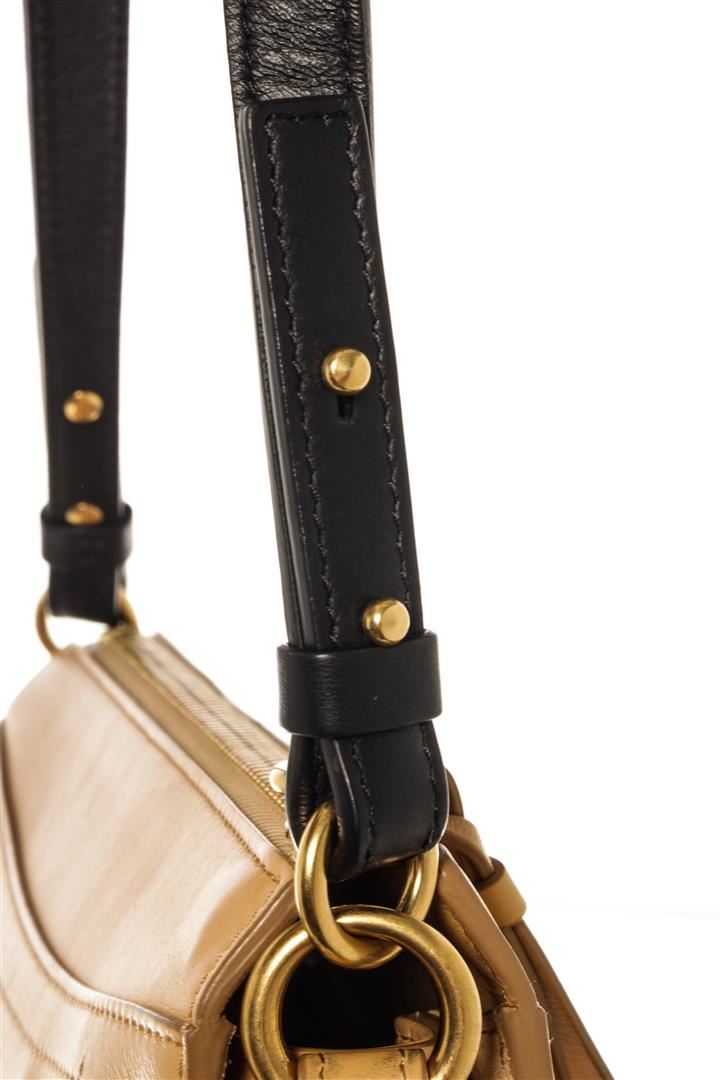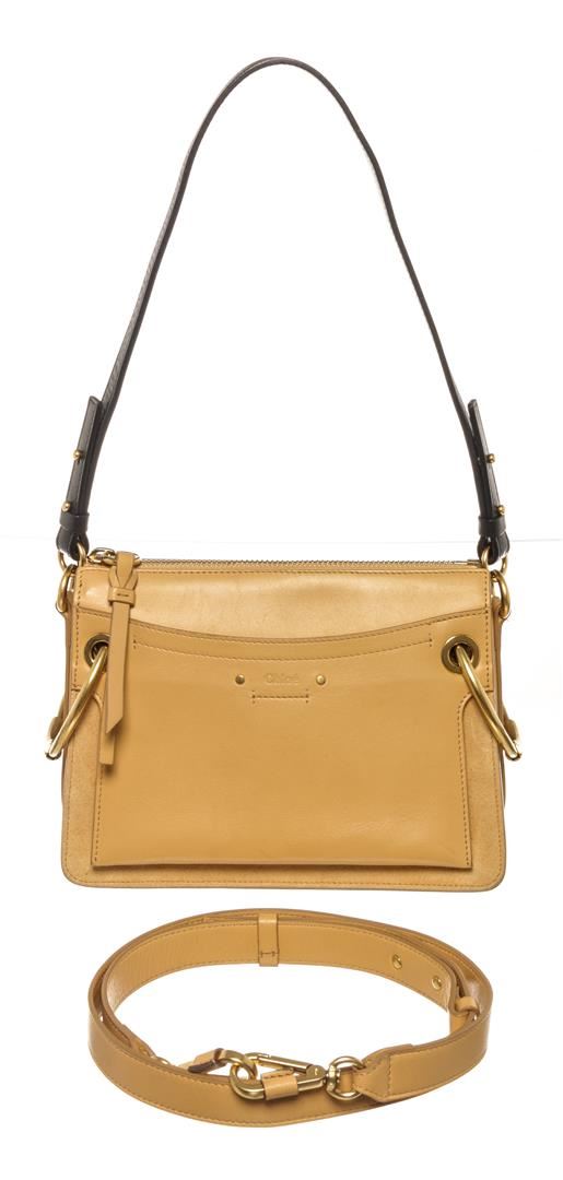 One Chloe Roy Shoulder Bag. Item is sold AS-IS. All available information is listed in the description and shown in the photo. Chloe Roy Shoulder Bag Neutral. Features an extra leather strap, gold hardware, tan canvas interior, black leather strap, and a gold zipper closure.