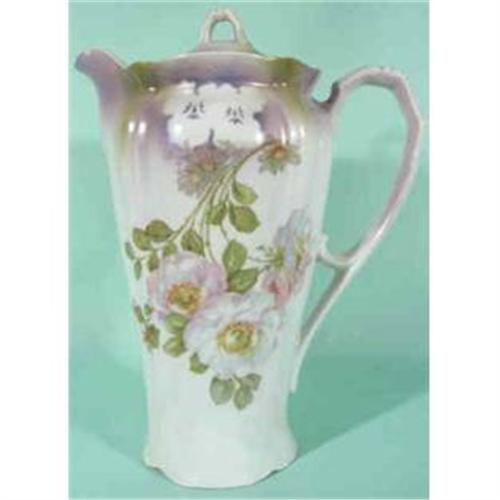 Chocolate Pot. Lustre decoration c1900. Two chips (see pic #4) and a "rough spot" also on the spout.