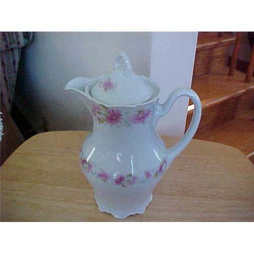 Chocolate Pot, Germany, signed, Victorian shape, floral design on white background; (c) 1900's; good condition, no cracks, dings etc.; embossed