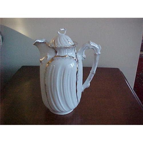 Chocolate Pot, gold overlay on white base; 9" tall, Unsigned; excellent condition