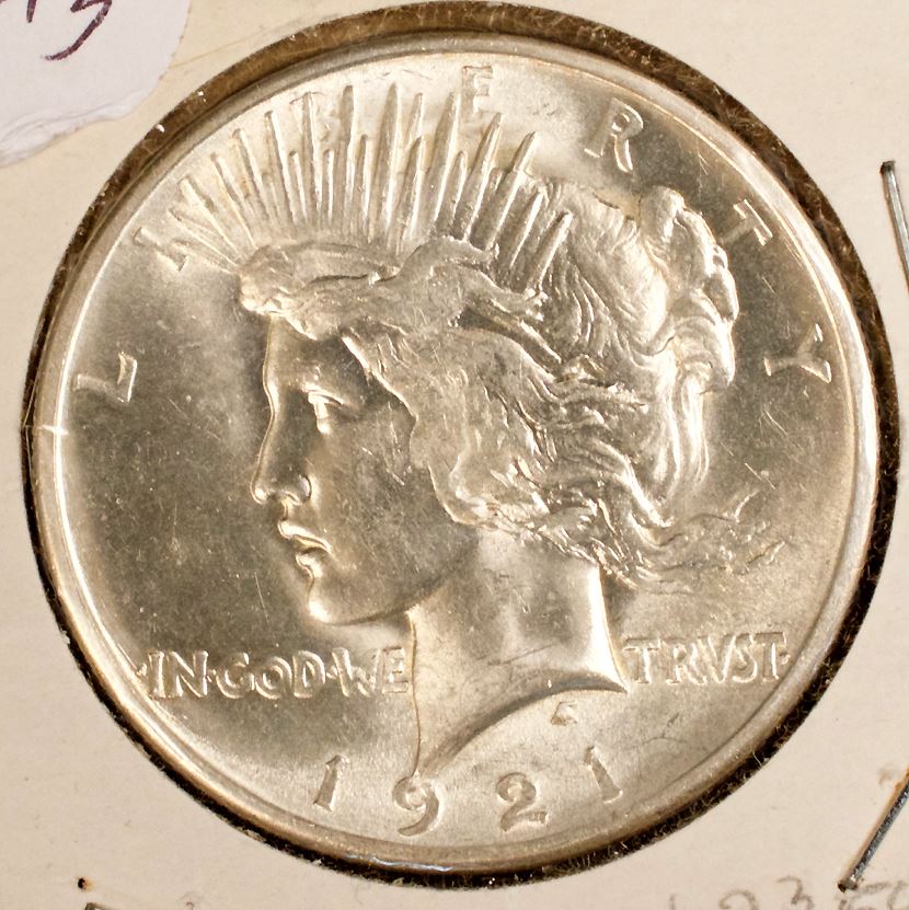 United States, Peace Dollar, 1921, Choice BU. Nice lustre on this high relief issue.