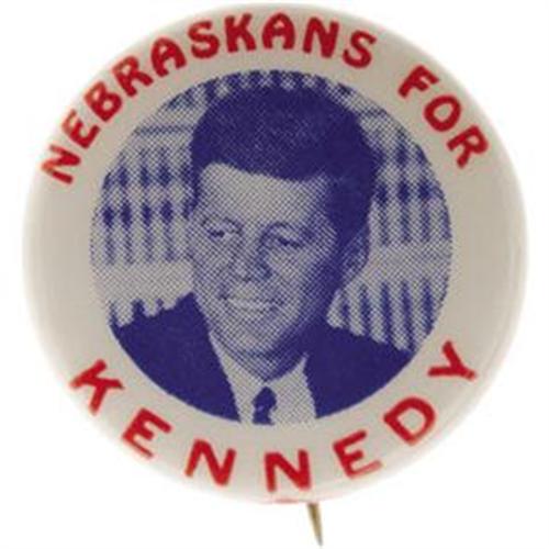 <B>Choice "Nebraskans For Kennedy" Pinback,</B></I> 1" diameter. Red type surrounding a blue 3/4 portrait make this a very attractive local-release item from the 1960 presidential race. A full-face version of this button exists and appears more frequently. Exceptional and in choice condition.<BR><BR><b>Shipping:</b> Miscellaneous Collectibles, Smal (<a target="_blank" href="http://www.heritageauctions.com/common/shipping.php">view shipping information</a>)