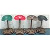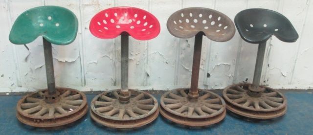 BASE OF SEATS ARE ANTIQUE STEEL CADILLAC CAR WHEELS WITH WOOD SPOKES
