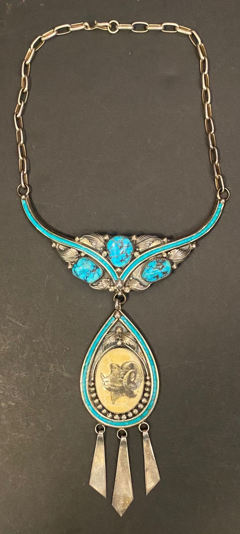 Choker Style Scrimshaw and Turquoise Necklace by C. Manning Navajo Artist