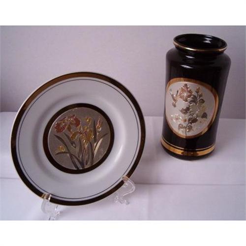 <tr><td>Title:Chokin Plate & Vase w/24K gold trim</td></tr>