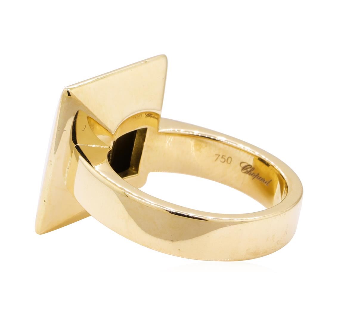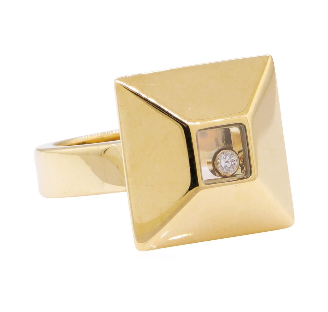 One ring featuring: 18KT yellow gold weighing 17.7 grams containing one free floating diamond weighing 0.05ct. The ring is a Chopard Happy Diamond ring.