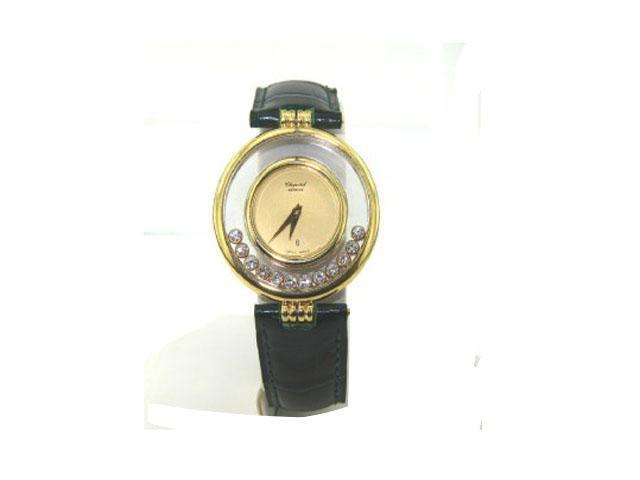 Chopard 18K Yellow Gold Happy Diamond Leather Strap Watch.Watch's Weight : 27 grams.Total weight of diamond: 0.48 cts. G color, VVS clarity.The measurements of watch head: 29 x 29 mm.The length of watch: 8".Water Resistant.Swiss made