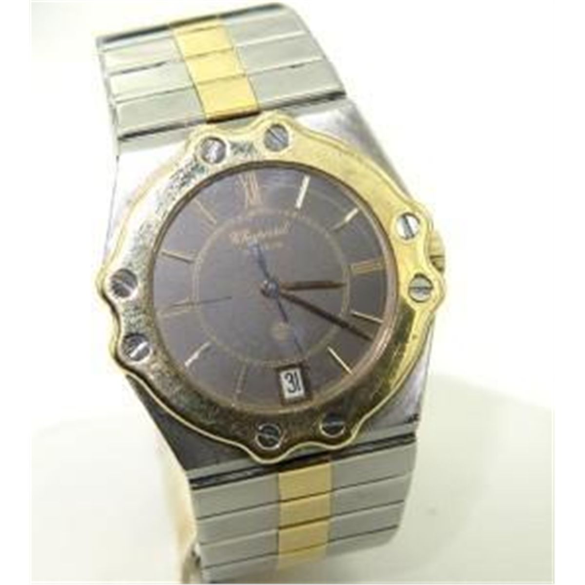 Chopard 18K Yellow Gold & Stainless Steel Watch.Watch's Weight : 86.5 grams.The measurements of watch head: 28 x 28 mm and 5 mm in thickness.The length of watch: 7" Water Resistant Swiss made Chain is 20 mm wide