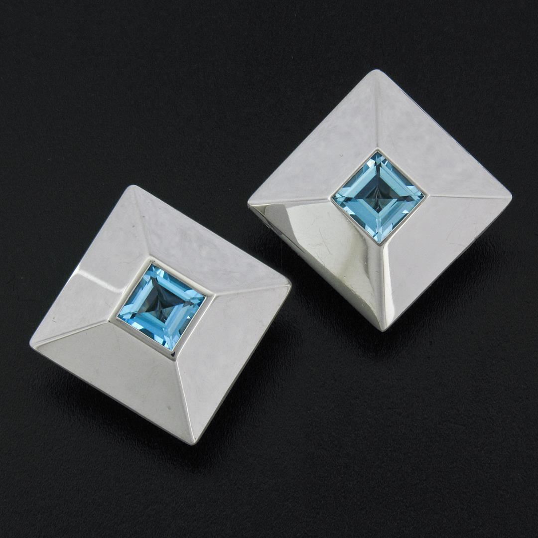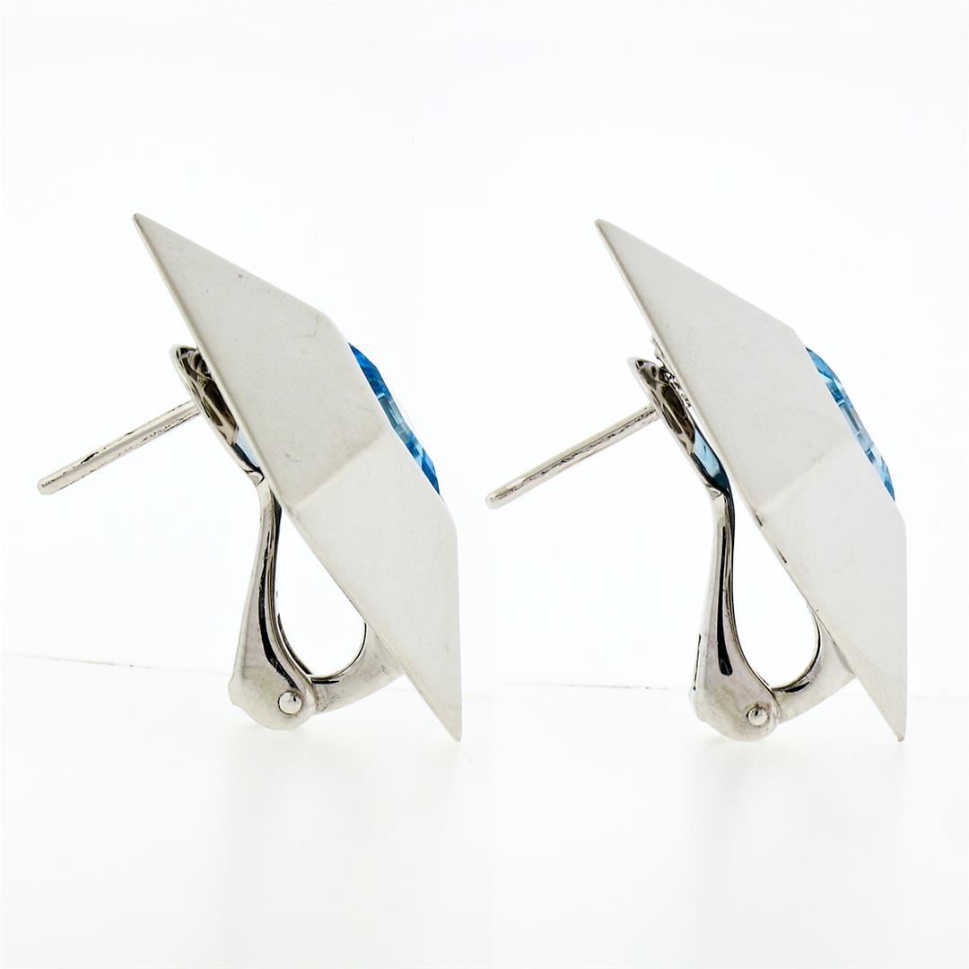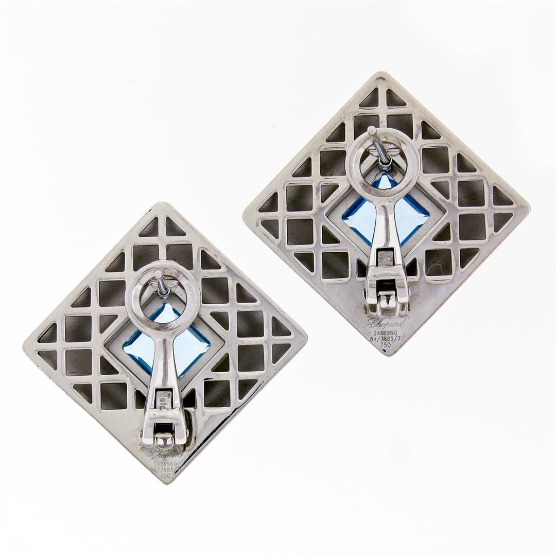 An estate solid 18k white gold square earrings by Chopard, with 2 sqaure step cut natural topaz (5.40ctw). The earrings measure approximately 24.0x33.05mm and weigh a total of 25.50 grams.