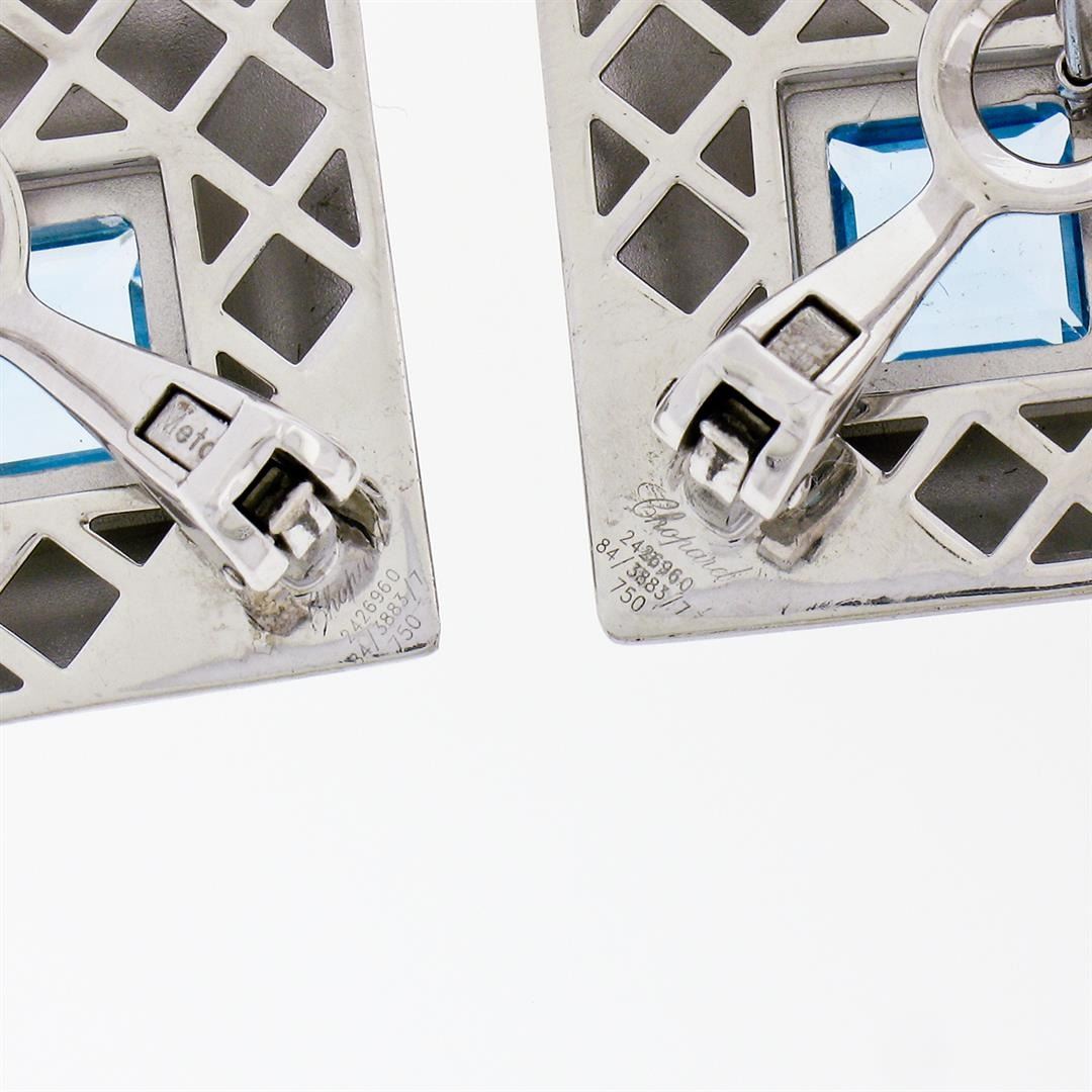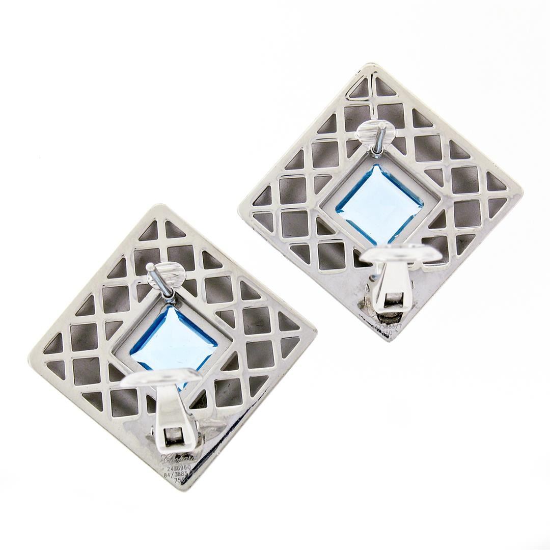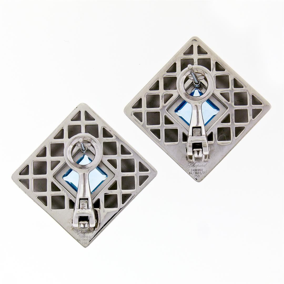 An estate solid 18k white gold square earrings by Chopard, with 2 sqaure step cut natural topaz (5.40ctw). The earrings measure approximately 24.0x33.05mm and weigh a total of 25.50 grams.