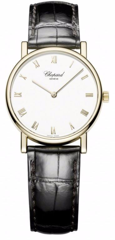 Model: 163154-0001 - CASE = [Material:18kt Yellow Gold], [Case Diameter:33.6], [Case Thickness:5.7mm], [Case Back:Solid], [Water Resistant:30 Meters - 100 Feet], [Crystal:Scratch Resistant Sapphire],; DIAL = [Color:White],; MOVEMENT = [Type:Manual Winding],; BAND = [Clasp:Tang Buckle], [Type:Alligator/Crocodile Leather Black], (Usually ships in 1 to 2 weeks.)