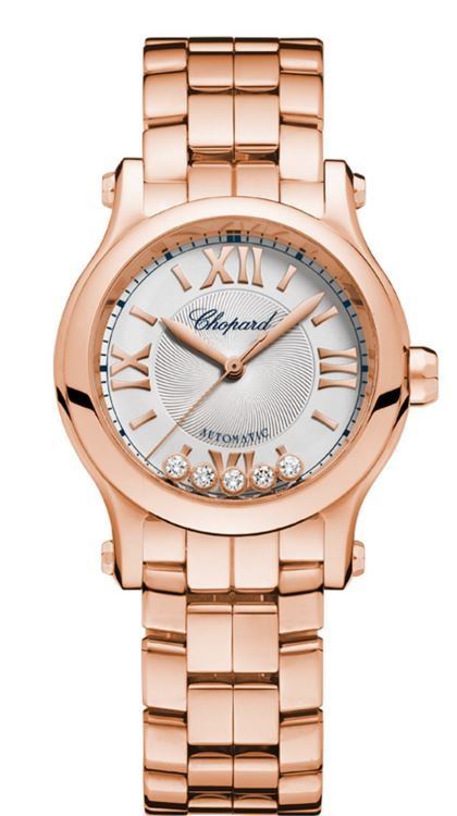 Model: 274893-5003 - CASE = [Material:18kt Rose Gold], [Case Diameter:30], [Bezel:Fixed], [Case Back:Skeleton], [Water Resistant:30 Meters - 100 Feet], [Crystal:Scratch Resistant Sapphire], DIAL = [Color:Silver], MOVEMENT = [Type:Automatic], [Crown:Push In], BAND = [Clasp:Hidden Folding], [Type:18kt Rose Gold], (Usually ships in 1 to 2 weeks.)
