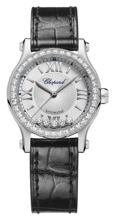 Model: 278573-3003 - CASE = [Material:Stainless Steel], [Case Diameter:30], [Bezel:Fixed with Diamonds], [Case Back:Skeleton], [Water Resistant:30 Meters - 100 Feet], [Crystal:Scratch Resistant Sapphire], DIAL = [Color:Silver], MOVEMENT = [Type:Automatic], [Crown:Push In], BAND = [Clasp:Tang], [Type:Black Leather], (Usually ships in 1 to 2 weeks.)